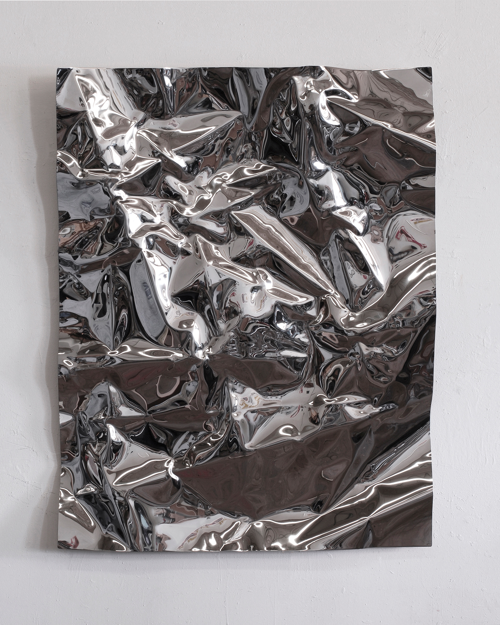 2026, hand formed steel; 36" X 48" X 3." Stainless steel, Mirror Finish.