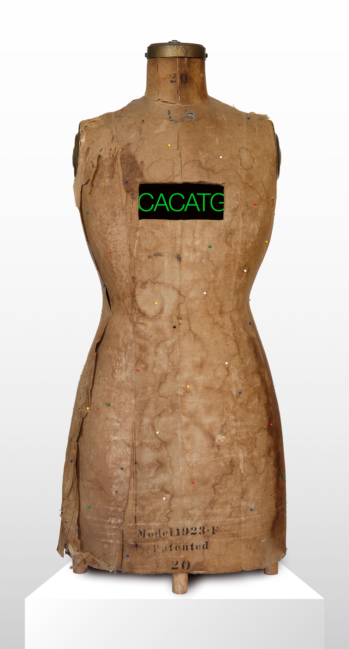 I reinvent an antique dress form mannequin, transforming it into a dynamic commentary on identity and genetics. By integrating a video screen that displays a human DNA sequence, I bridge the gap between the physical representation of the human form and the intangible complexities of genetic information. This innovative piece invites viewers to contemplate the intersection of history, science, and personal identity, evoking the multifaceted nature of human existence.